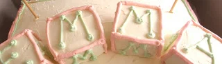 Baby blocks I made from crisped rice cereal treats and butter cream frosting.